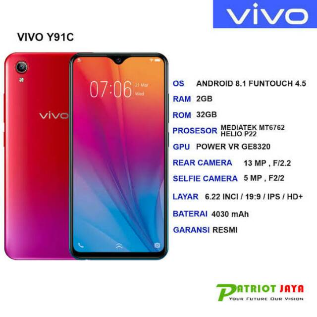VIVO Y91C RAM 232 GARANSI RESMI VIVO INDONESIARp999900. Ini berjalan pada Android 60 Marshmallow dan memiliki Octa-Core prosesor ARM 4. Hadir dengan harga dibawah 2 Juta membuat Vivo Y91C menjadi salah satu smartphone murah yang layak untuk sobat miliki.
